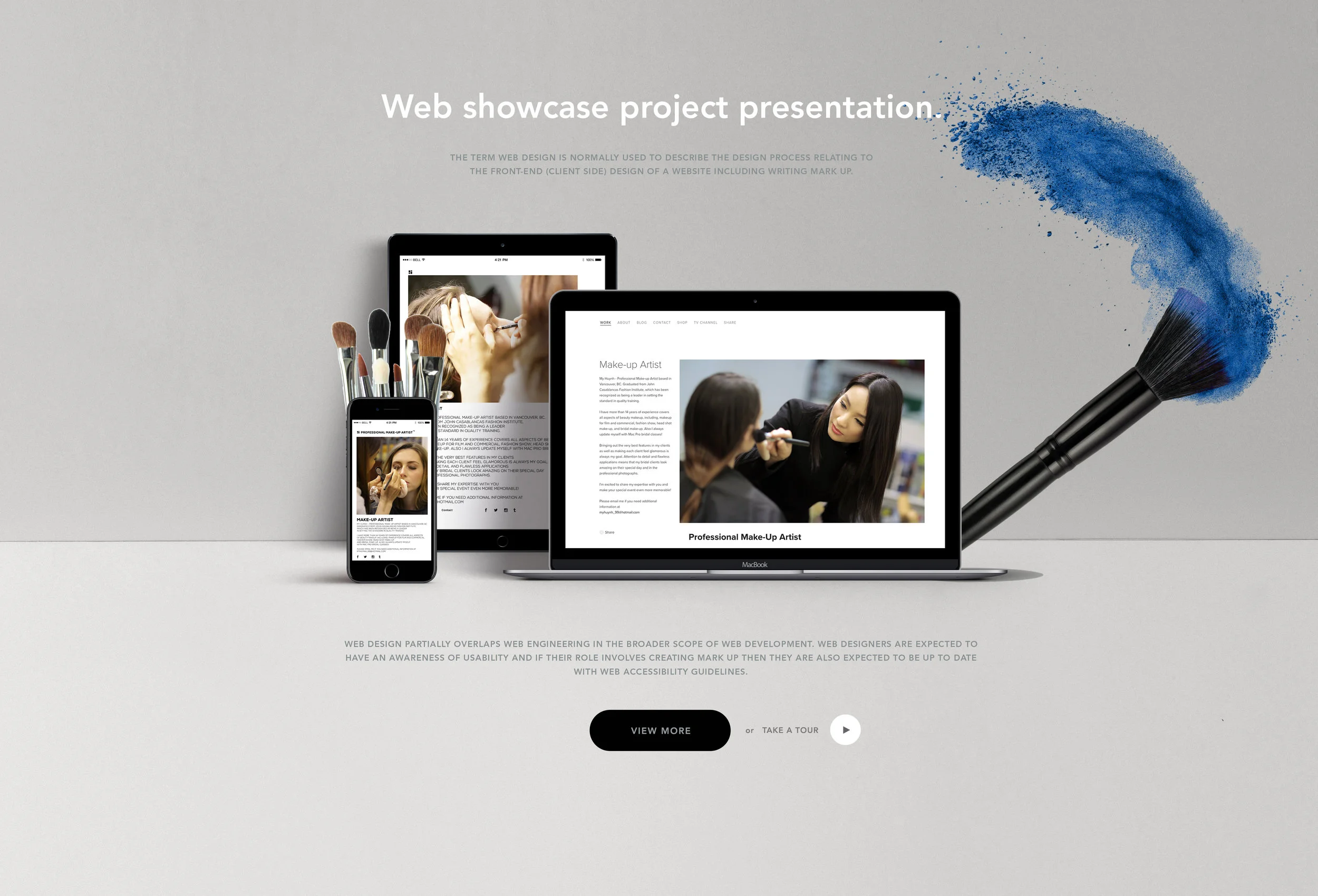 Web design encompasses many different skills and disciplines in the production and maintenance of websites. The different areas of web design include web graphic design; interface design; authoring, including standardized code and proprietary software; user experience design; and search engine optimization. Often many individuals will work in teams covering different aspects of the design process, although some designers will cover them all. The term web design is normally used to describe the design process relating to the front-end (client side) design of a website including writing mark up. Web design partially overlaps web engineering in the broader scope of web development. Web designers are expected to have an awareness of usability and if their role involves creating mark up then they are also expected to be up to date with web accessibility guidelines.